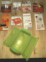 便利調理グッズをいただいた。野菜とかを放り込んでレンジでチンするモノなのだが取り説(レシピ)が8冊も付いてきた。