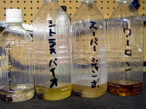 やっぱりウーロンいまいちですナー。その他のクリーナーはだいたい同じくらい落ちてます。スーパージャンボはやや劣るって感じですが。吹き飛ばしのパワーを考えると用途が違うってところでしょうか。これを見てもゴロゴロを使うならスーパージャンボをシューッとやって貯まった液でってのは無しって事ですね。
